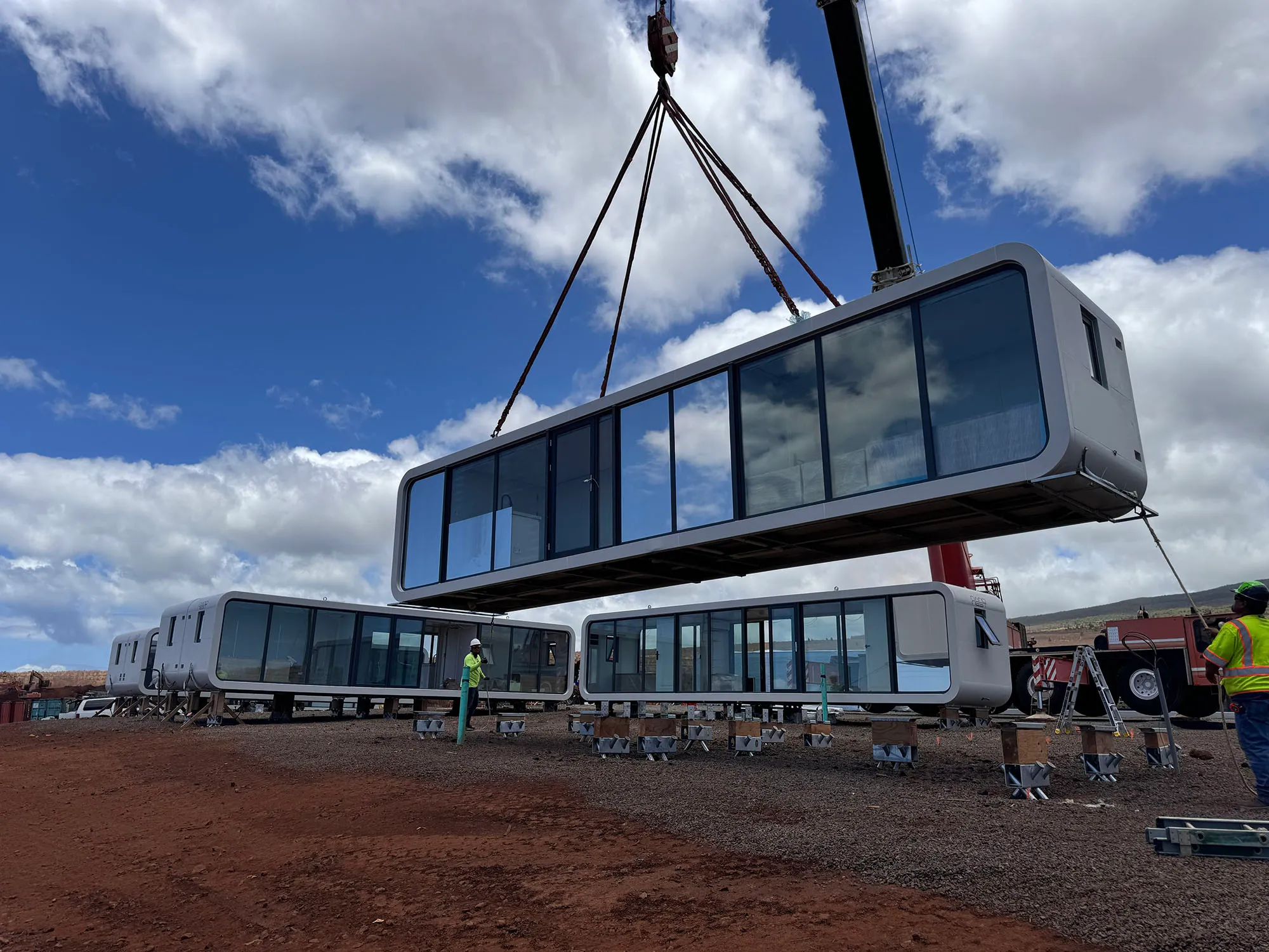 In August 2023, wildfires destroyed 2,200+ Maui structures, displacing thousands of Hawaiian residents. No time for pilot programs or learning curves. Families needed housing immediately, so Hawaii reached out to NanoNest. What began as a request for 50 homes quickly grew across two additional installations, ending with 1,000+ victims in NanoNest homes. Today, we’re the #1 non-FEMA housing provider in Maui.